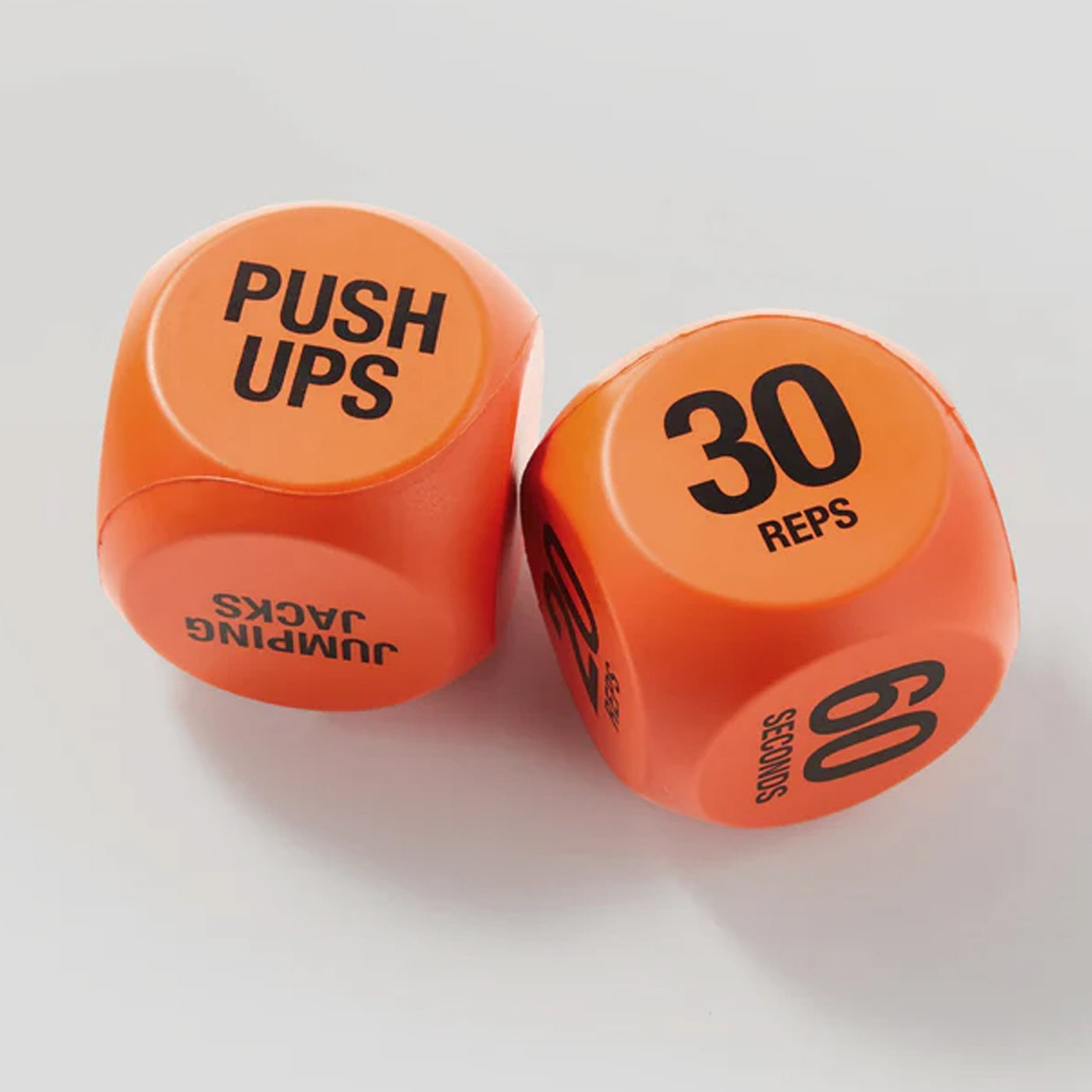 Roll the dice to determine your daily exercise and challenge yourself, with 36 variations the dice can land on. Featuring exercises on one dice and rep counts on the other, the fitness dice include jumping jacks, crunches, squats, push ups, walking lunges and burpees, in reps of 10, 20 & 30, or 30, 60 and 90 seconds.