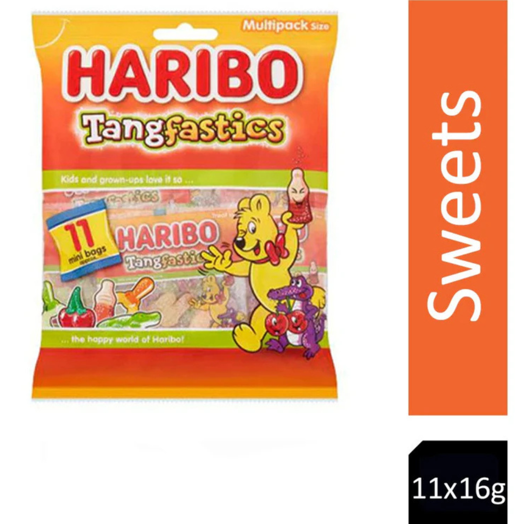 Satisfy your craving for sweet and sour with Haribo Tangfastics Mini Bags. Each mini bag is packed with a delicious mix of tangy, sour gummies and fruity flavors, making them the perfect snack for any occasion. Conveniently sized for on-the-go or sharing with friends, these mini bags bring a burst of fun and flavor in every bite. A great treat for parties, lunches, or just as a quick pick-me-up!