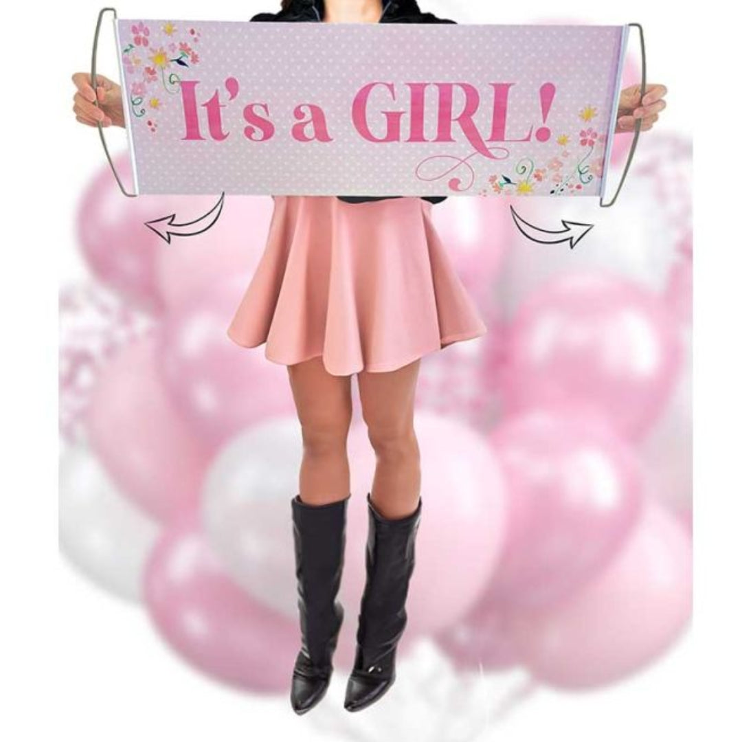 Celebrate the exciting moment with this charming “It’s a Girl” Gender Reveal Banner, the perfect addition to your baby shower or gender reveal party. Featuring elegant pink tones and eye-catching lettering, it’s ideal for announcing the arrival of your little princess in style.