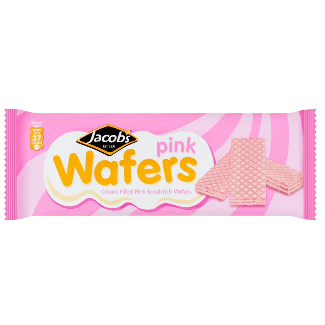 Enjoy the classic taste of Jacobs Pink Wafers 100g, featuring delicate, crispy pink wafers layered with smooth, sweet cream filling. Perfect for teatime, lunchboxes, or a light snack, these timeless treats offer a delightful crunch and nostalgic flavour in every bite. Ideal for sharing or indulging on your own, Jacobs Pink Wafers are a charming addition to any biscuit selection.