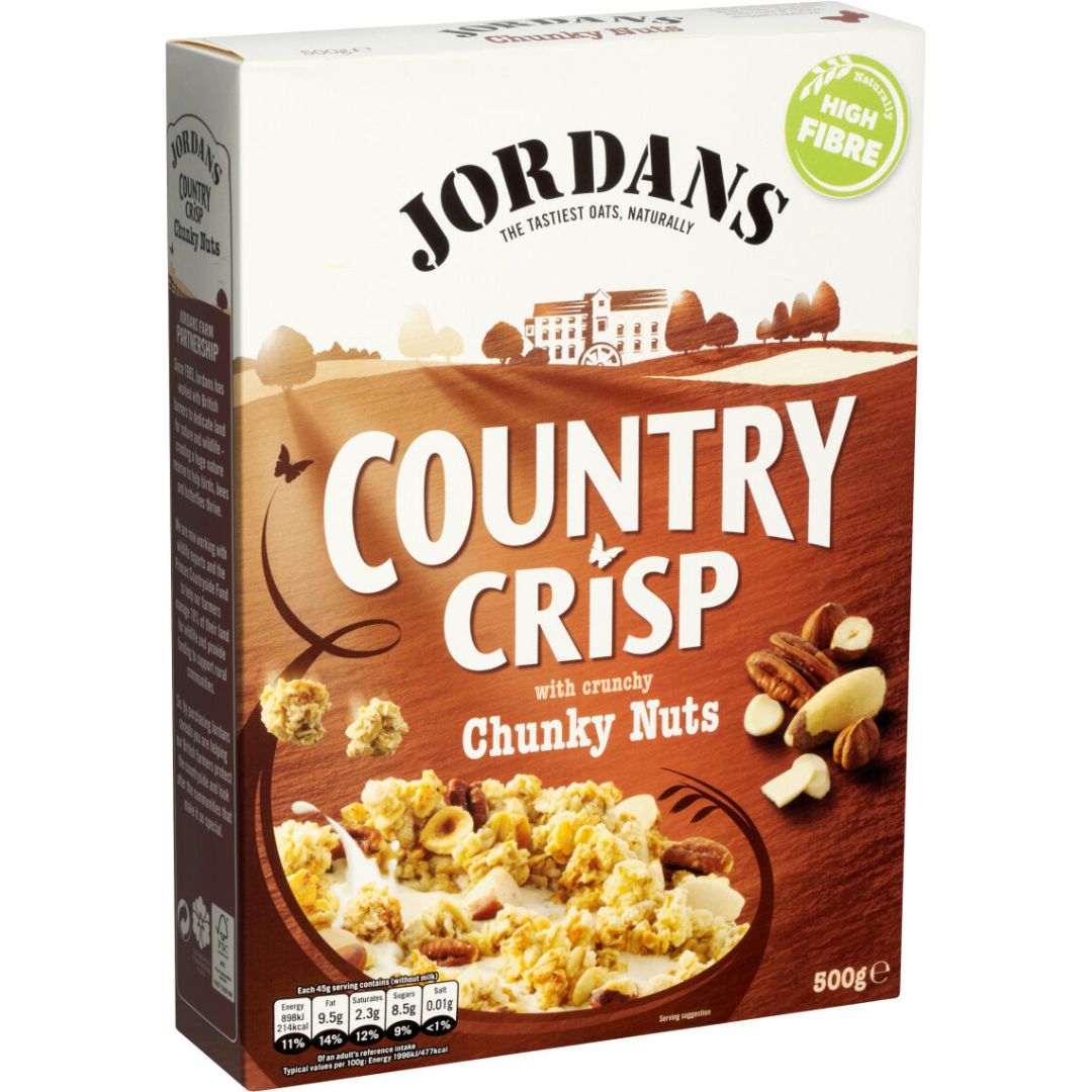 Start your day with the delicious crunch of Jordans Country Crisp with Nuts 500g. This tasty breakfast cereal combines golden baked oat clusters with crunchy nuts for a satisfying and wholesome bite. Perfect with milk or yogurt, it provides a flavorful and energizing start to your morning. Ideal for a balanced breakfast or a crunchy snack anytime.