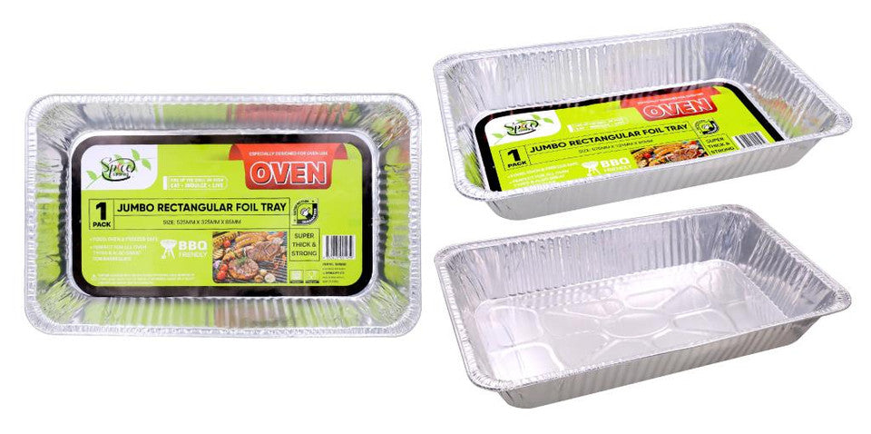 Cook and serve with ease using the Jumbo Rectangle Roaster, made from sturdy 70gsm aluminum. Perfect for roasting meats, vegetables, and baking large dishes, this disposable tray is ideal for family meals, parties, and catering events. The generous size allows for even heat distribution, ensuring perfectly cooked food every time. Lightweight yet durable, it offers a hassle-free cleanup option. Whether for home use or outdoor gatherings, this roaster is a convenient and reliable choice for all your cooking needs.Dimensions: 44 × 32 × 7.5 cm