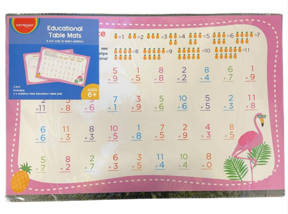 Make learning math fun and interactive with the Keyroad Addition Educational Table Mats! These vibrant, colorful mats are designed to help children learn addition in a hands-on way. Perfect for kids aged 4 and up, each mat features engaging addition problems, visually appealing illustrations, and an easy-to-follow layout that encourages kids to practice basic math skills. Ideal for use at the dining table, desk, or during learning time, these mats are a great way to combine meal times with educational play.