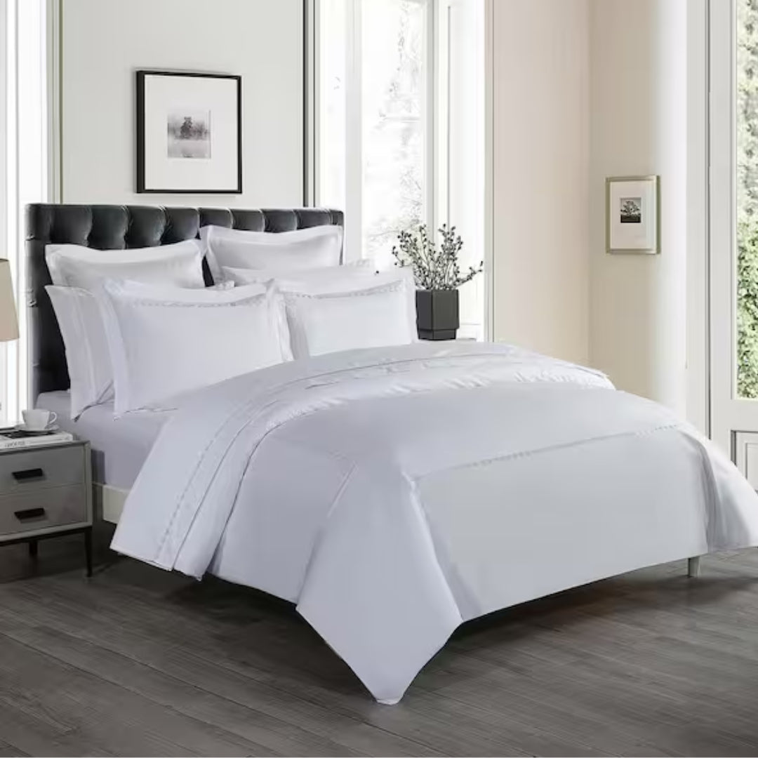 Add comfort and style to your bedroom with this king-size white duvet cover set, complete with two matching pillowcases. Crafted from soft, breathable, and easy-care fabric, it’s perfect for everyday luxury. Ideal for modern homes, hotels, or guest rooms, this set offers a crisp, clean look and hassle-free maintenance.