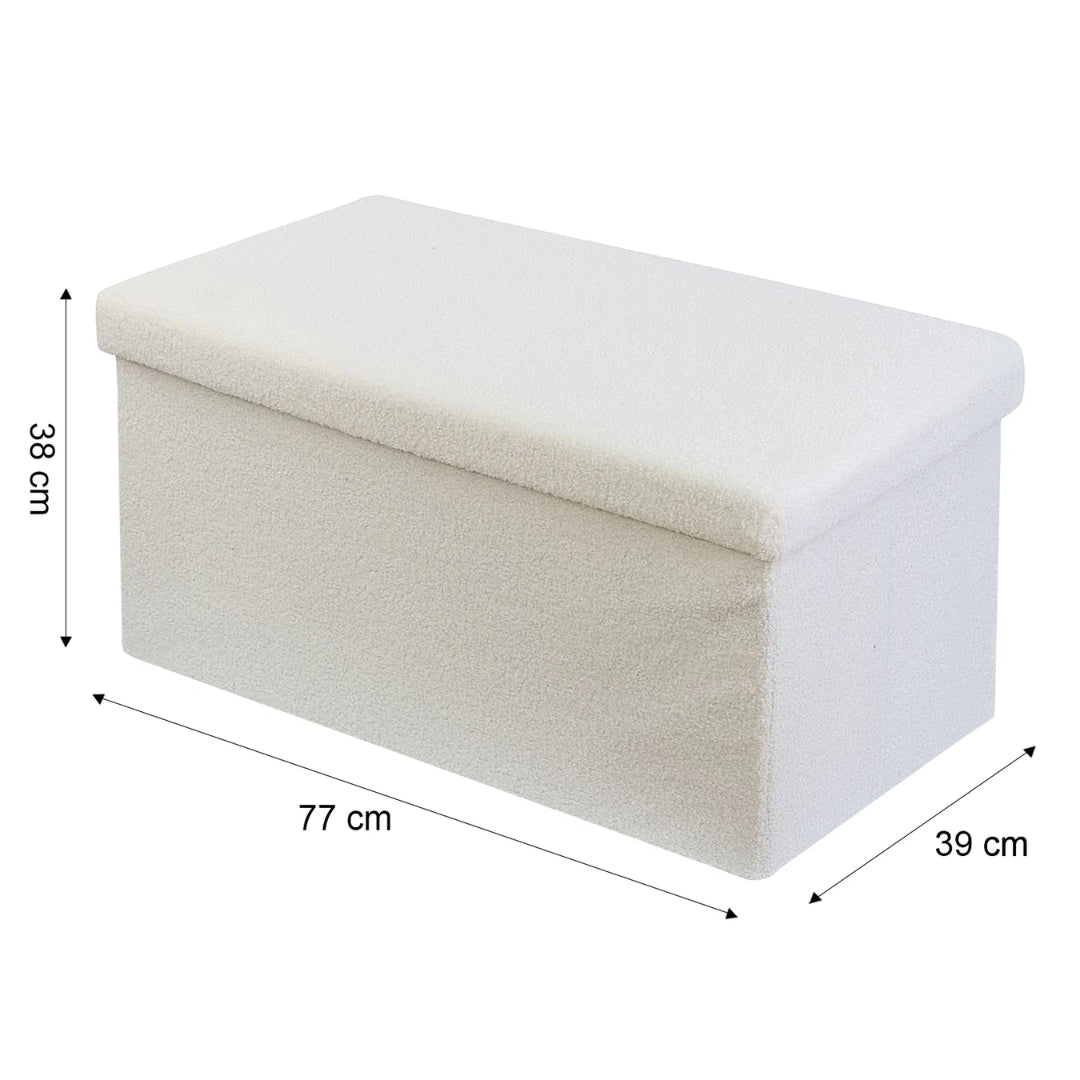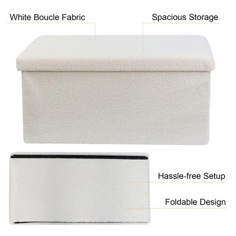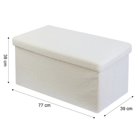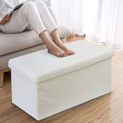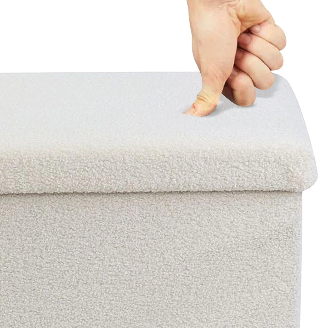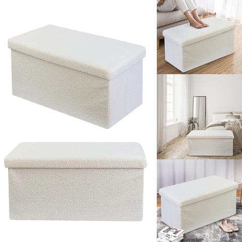 Large Teddy Boucle Fabric Folding Storage Ottoman Box Stool Home Office White Sale