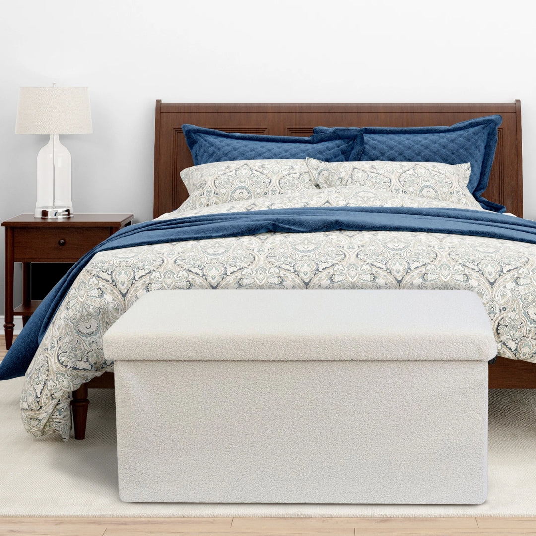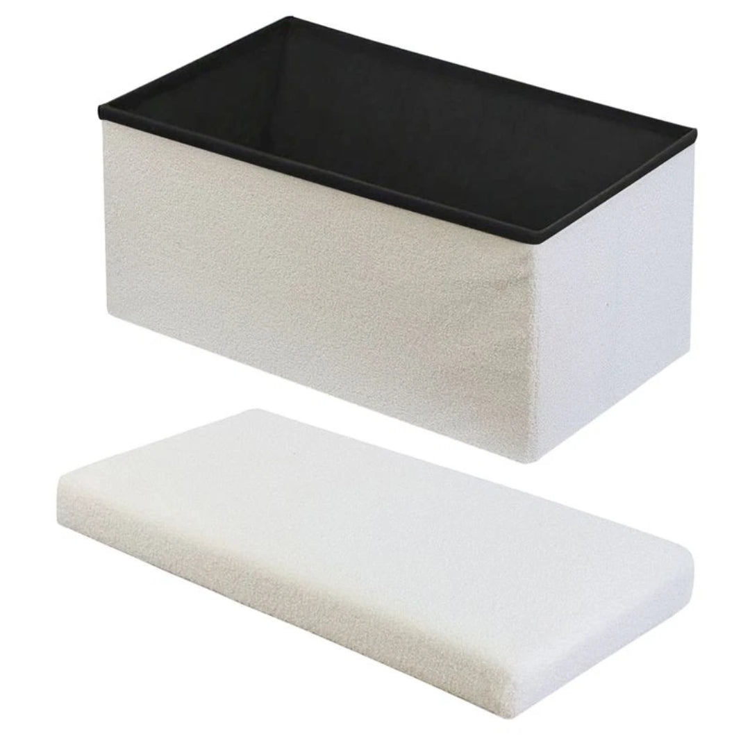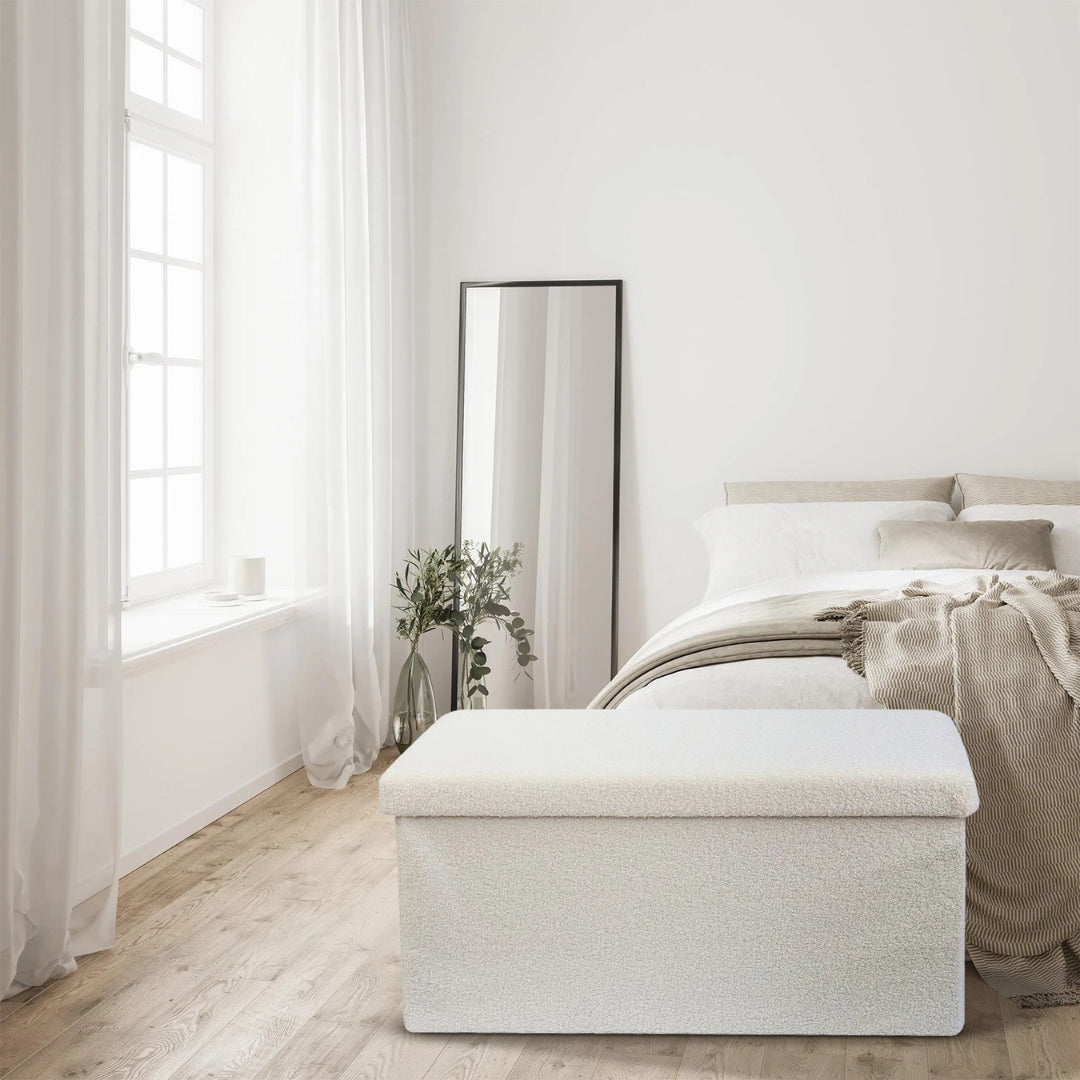 Large Teddy Boucle Fabric Folding Storage Ottoman Box Stool Home Office White Sale
