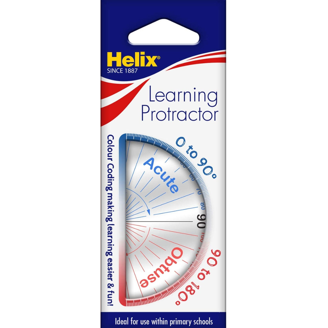 Make measuring angles simple and accurate with the Helix Learning Protractor, designed for students and everyday use. Crafted from clear, durable plastic, it allows easy reading of measurements while ensuring long-lasting performance. Ideal for classrooms, homework, or office tasks, its precise markings help learners build confidence in geometry and maths. Lightweight and compact, the Helix Learning Protractor fits neatly into pencil cases or stationery sets, making it an essential tool for study and learning.