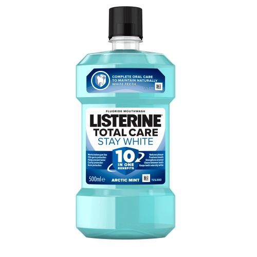 Maintain a brighter smile with Listerine Mouthwash Stay White. This 500ml bottle features a specialized formula designed to help reduce stains and maintain the natural whiteness of your teeth. With its powerful antibacterial properties, Listerine Stay White fights plaque and freshens breath, while its gentle formula ensures a safe and effective whitening experience. Ideal for daily use, this mouthwash helps you achieve a clean, white smile and long-lasting oral freshness.