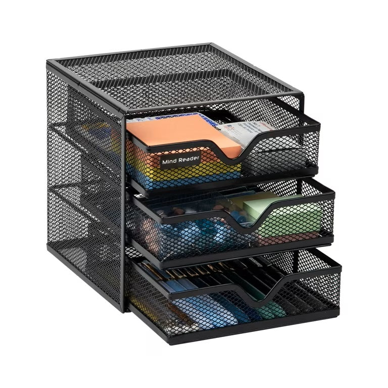 Maximize your storage with the MESH 3-Tier Drawer Organizer, a sleek and durable solution for keeping your office or home space tidy. This versatile organizer features three mesh drawers that provide ample space for storing documents, office supplies, or personal items. Its modern design ensures durability and a professional look, while the mesh construction allows for easy visibility and ventilation. Ideal for desks, countertops, or workstations, the MESH 3-Tier Drawer Organizer combines functionality with style to enhance your organizational efficiency and workspace aesthetics