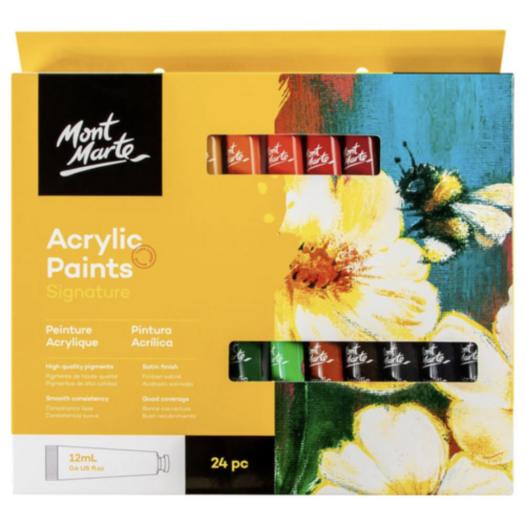 Unleash your creativity with the Mont Marte 24 x 12ml Acrylic Paint Set, offering a rich array of professional-grade colours for all your artistic and crafting projects. Whether you're painting a masterpiece or personalizing DIY projects, this versatile set provides excellent coverage, smooth texture, and stunning vibrancy. Ideal for artists of all levels, this set is perfect for both canvas painting and craft applications.