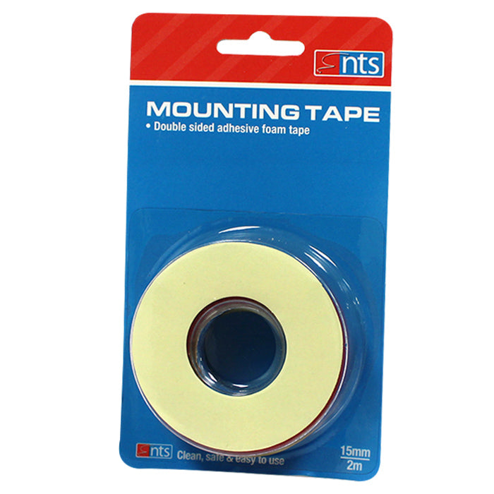 NTS Clear Mounting Tape (15mm x 2m, 2-pack) is a strong, double-sided adhesive solution perfect for mounting photos, decorations, signs, and lightweight items on smooth surfaces. Transparent, mess-free, and easy to cut—ideal for home, office, and crafting use.