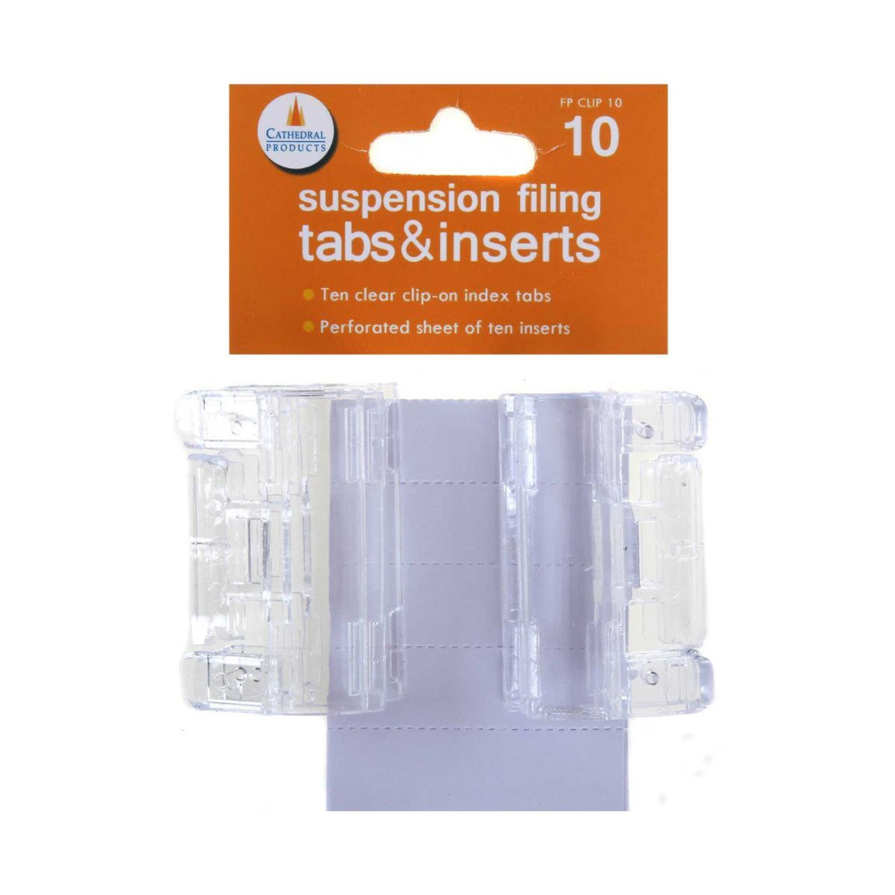 Keep your filing system neat and efficient with this Pack of 10 Hanging File Tabs & Inserts. Each set includes sturdy, clear plastic tabs that securely clip onto standard suspension or hanging files, along with blank white paper inserts for customizable labeling. Ideal for use in offices, schools, or home filing cabinets, these tabs make it easy to categorize and access your documents quickly. Reusable and easy to slide into place, they help maintain a tidy and professional filing setup.