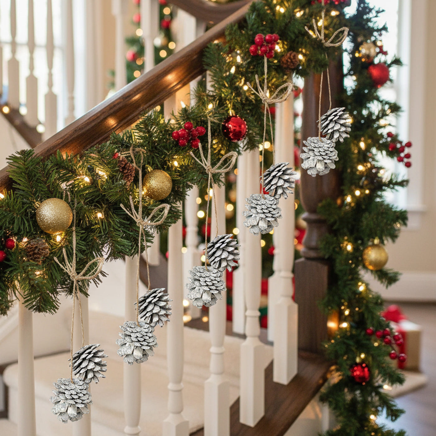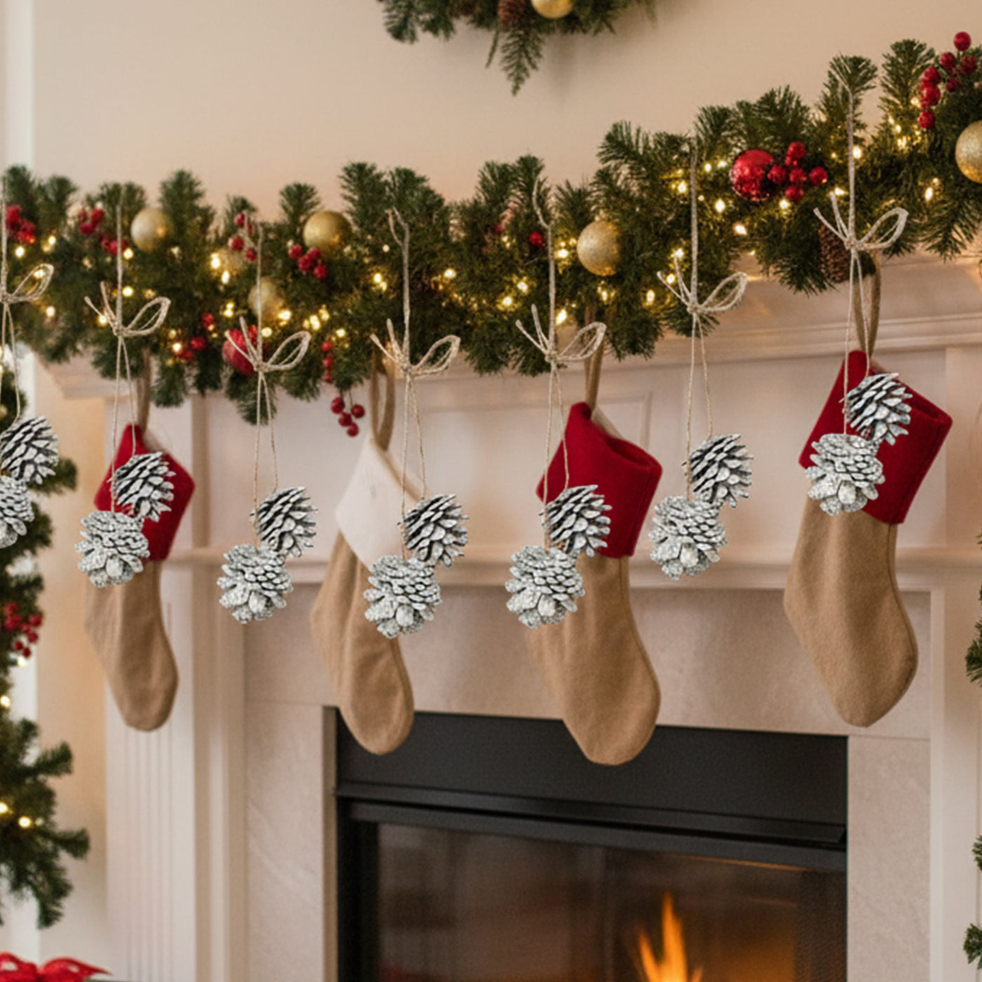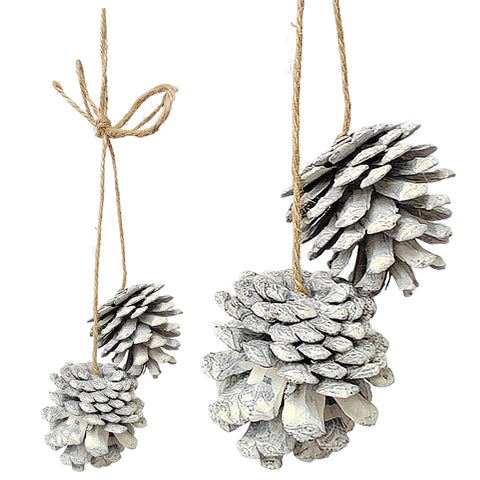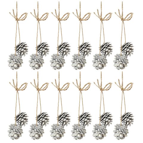 Pack of 12 Nordic White Pine Cone Pairs – Christmas Decoration Set Sale