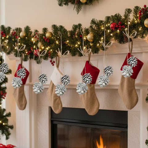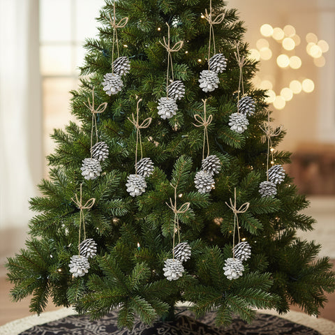 Bring a touch of winter forest charm to your holiday décor with the Pack of 12 Nordic White Pine Cone Pairs. Each pair features natural pine cones dusted with a snowy white finish, evoking a cozy, frosted woodland feel. Perfect for hanging on the tree, decorating wreaths, or accenting centerpieces, they add rustic elegance to any festive setup. Lightweight and beautifully textured, these pine cones blend seamlessly with Nordic, farmhouse, or classic Christmas themes. A versatile and timeless addition to your seasonal collection.