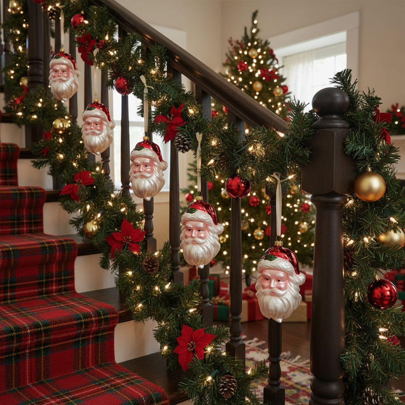 Pack of 4 Perennial Santa Face Baubles – Christmas Decoration Set Sale