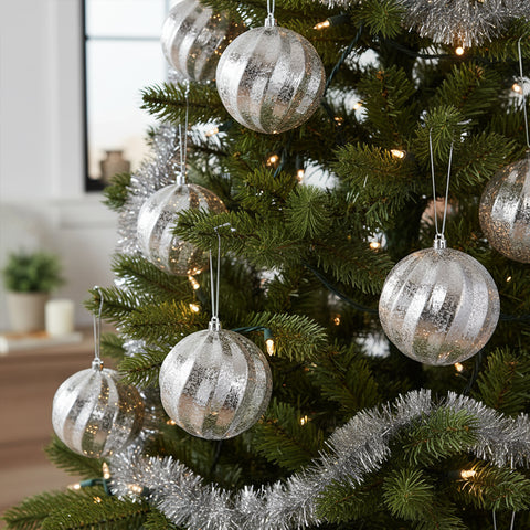 Transform your holiday décor with the Pack of 6 Large 15cm Enchanted Silver Baubles – Christmas Decoration. These oversized ornaments shimmer with an elegant silver finish and a touch of magical sparkle, making them a stunning addition to your tree, wreath, or festive centerpiece. With a generous 15cm diameter, each bauble makes a bold, eye-catching statement while maintaining a refined, enchanted look. Perfect for silver-themed or modern holiday aesthetics.