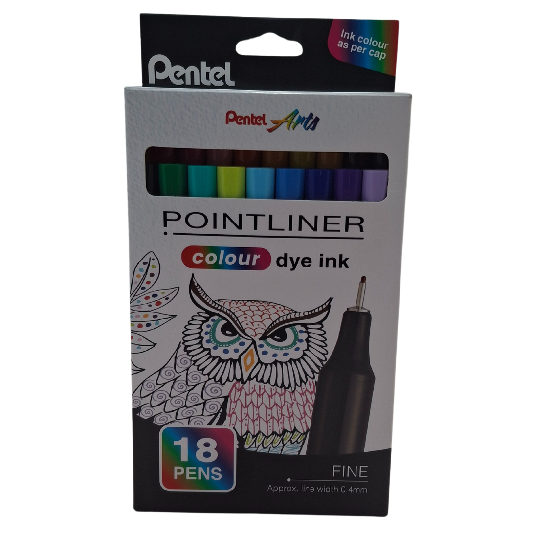 This 18-pack Pentel Pointliner Colour Wallet features vibrant, fine-tip pens ideal for drawing, sketching, and detailed work. Perfect for artists, students, and professionals.