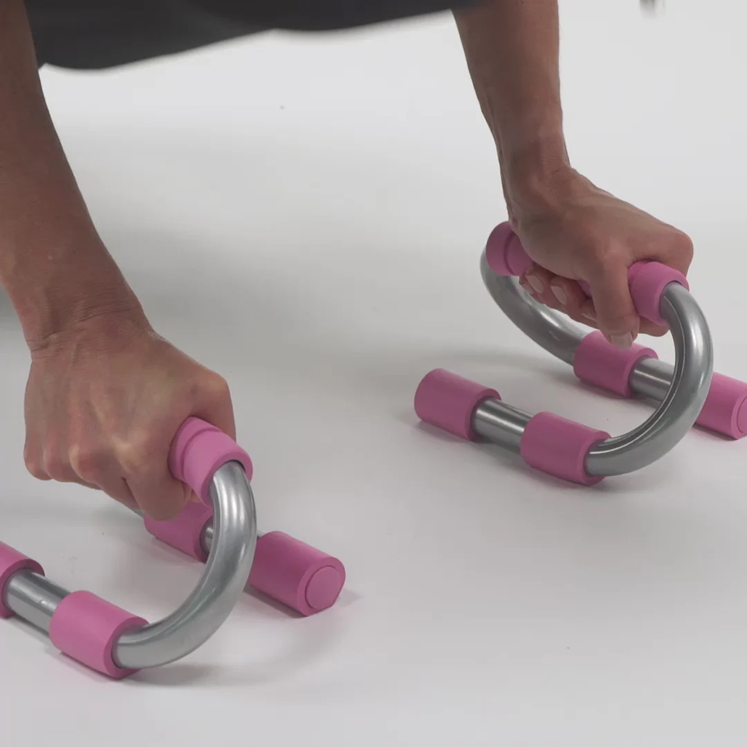 Boasting dense foam hand grips for comfort, sturdy one-piece tubular metal construction with rubber end caps for floor protection and stability, these bars offer a safe and ergonomic solution to elevate your upper body workouts.