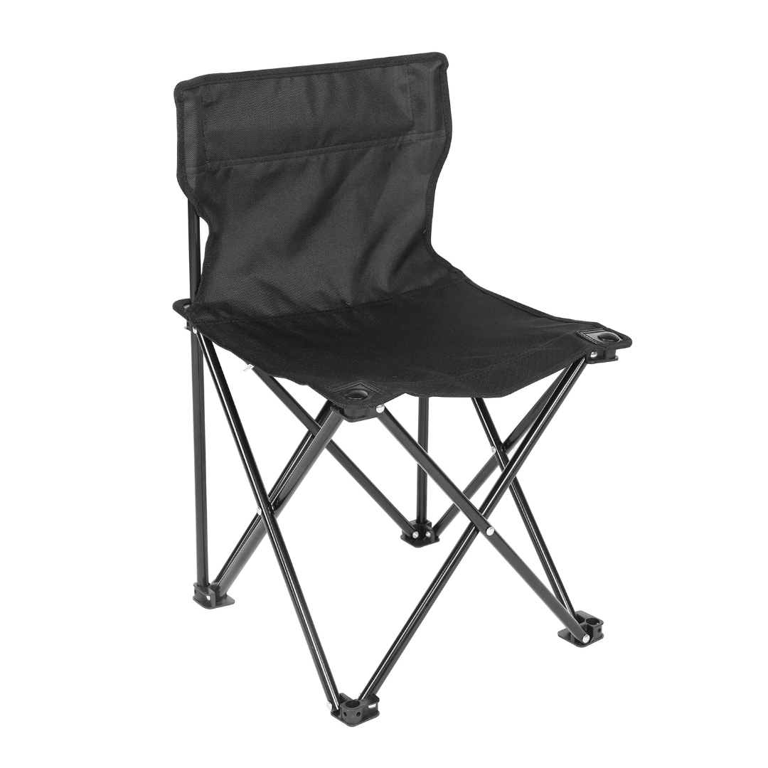 Crafted with a sturdy frame and durable fabric, this chair offers reliable support while remaining compact and foldable for easy storage. Its sleek black design ensures it complements any outdoor setting, providing both style and practicality.