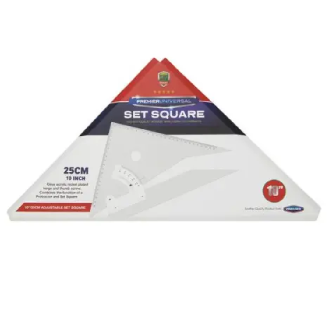 The Premier Universal Adjustable Set Square is perfect for accurate measurements and angles. Measuring 10"/25cm, it’s ideal for technical drawing, drafting, and DIY tasks. Sturdy and adjustable, it offers precision for professionals and enthusiasts alike.