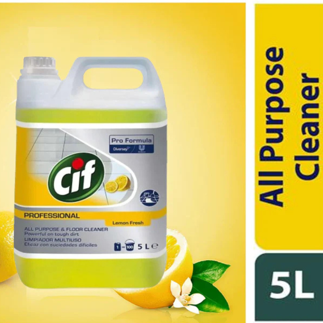 Cif Pro Floor Cleaner Lemon 5L offers powerful, professional-grade cleaning for a spotless shine. Infused with a refreshing lemon scent, it removes dirt and grease effortlessly, leaving floors sparkling clean and hygienic. Ideal for commercial and home use.