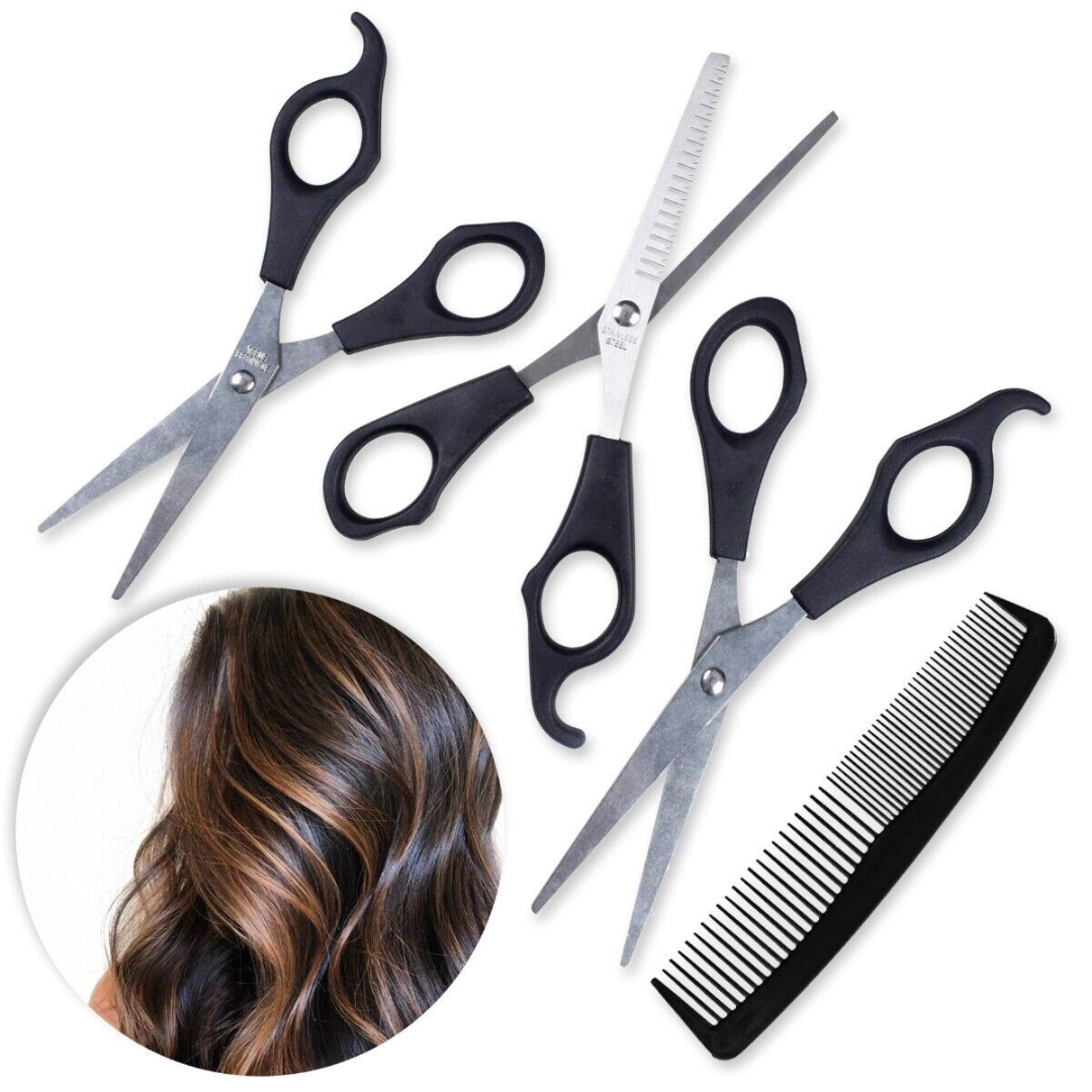 Key Features:✔️ Professional hair-cutting kit – includes scissors, thinning shears & comb✔️ Sharp stainless steel blades for precision cutting✔️ Ergonomic handle design for comfort & easy control✔️ Thinning shears for layering & texturizing hair✔️ Perfect for all hair types – home & professional use