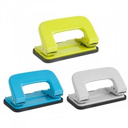 Deli Rio (0136) 2‑Hole Paper Punch – Compact yet durable hole punch designed for up to 10 sheets at once, with 5.5 mm clean holes spaced 80 mm apart. Built from sturdy metal, featuring a lockable handle for space-saving storage and available in assorted colors.