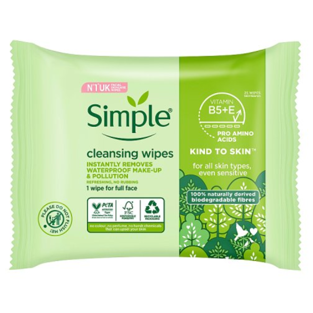 Refresh and cleanse your skin with Simple Face Wipes. This 25-pack of wipes is specially designed for sensitive skin, offering a gentle yet effective solution for removing makeup, dirt, and impurities. Enriched with skin-loving ingredients, these wipes are free from artificial fragrances and harsh chemicals, ensuring a soothing clean that leaves your skin feeling fresh and comfortable. Ideal for on-the-go use, Simple Face Wipes provide quick, effortless care for a radiant complexion.