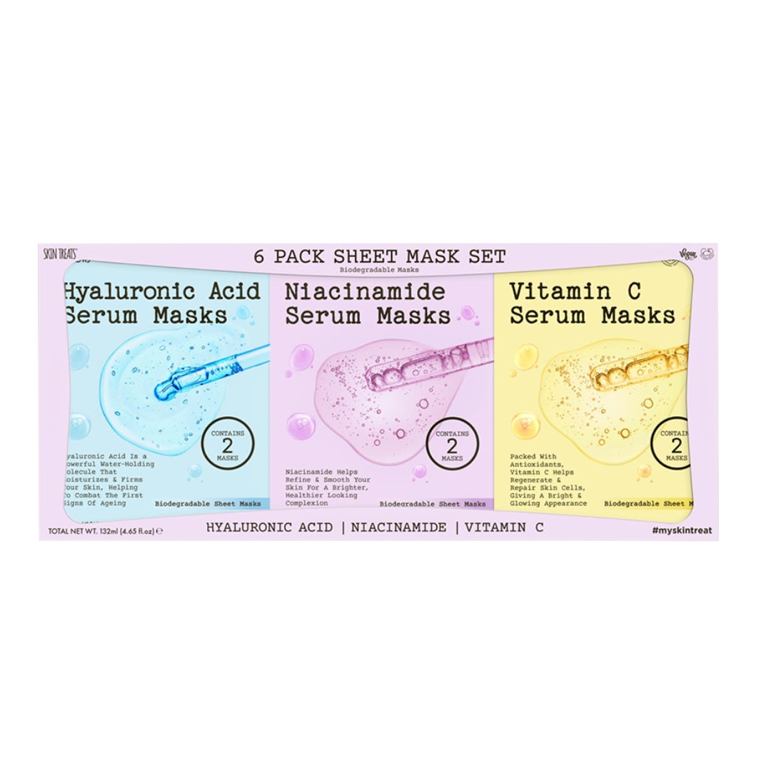 Six Pack Serum Sheet Mask Set2x Niacinamide Sheet Masks2x Hyaluronic Acid Sheet Masks2x Vitamin C sheet Masks