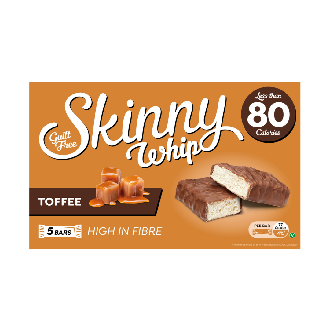 Indulge in the rich, creamy taste of Skinny Whip Toffee Bars 5x20g! These light and chewy bars are packed with delicious toffee flavor, wrapped in a smooth chocolate coating for a guilt-free snack. High in fiber and under 100 calories per bar, they’re perfect for satisfying sweet cravings without the guilt. Grab your pack today!