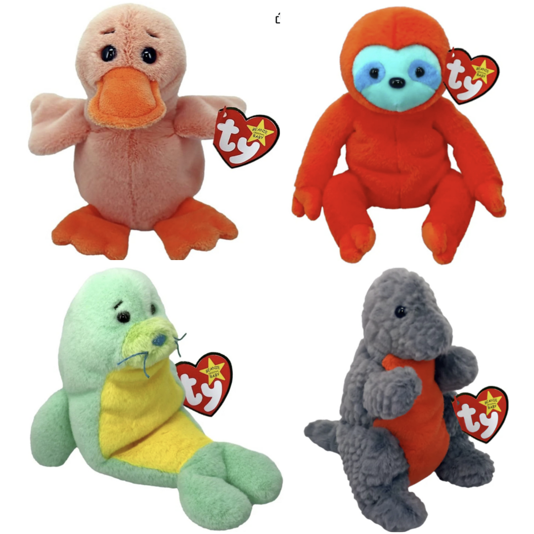 Collect the magic of nostalgia with our TY Beanie Baby Plushes! These iconic, lovable stuffed animals are perfect for fans of all ages. With their soft, cuddly fabric and unique designs, each Beanie Baby brings a bit of charm and warmth to your collection or home. Whether you're a long-time collector or just starting out, these plush toys are a timeless addition to any shelf, bed, or playroom