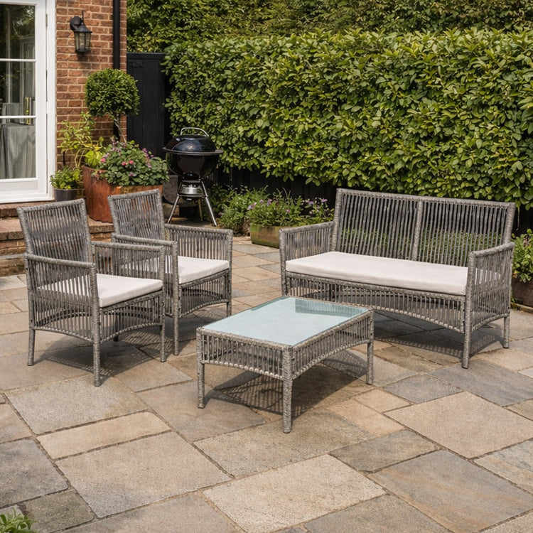 Elevate your outdoor living space with this stylish and durable 4-piece conversation set. Featuring a sophisticated grey finish and a modern silhouette, this set is designed to blend seamlessly with any garden, patio, or terrace decor.
