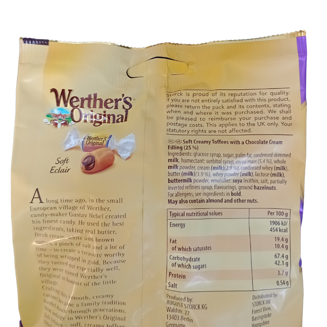 Indulge in the timeless taste of Werther’s Original Soft Eclairs, a delicious treat that combines smooth, creamy caramel with a soft, melt-in-your-mouth texture. Perfect for candy lovers who appreciate classic, high-quality caramel, these soft eclairs are a delightful fusion of Werther’s signature rich caramel flavor and a smooth, creamy center. Ideal for snacking, sharing, or gifting, these soft eclairs provide the ultimate caramel experience.
