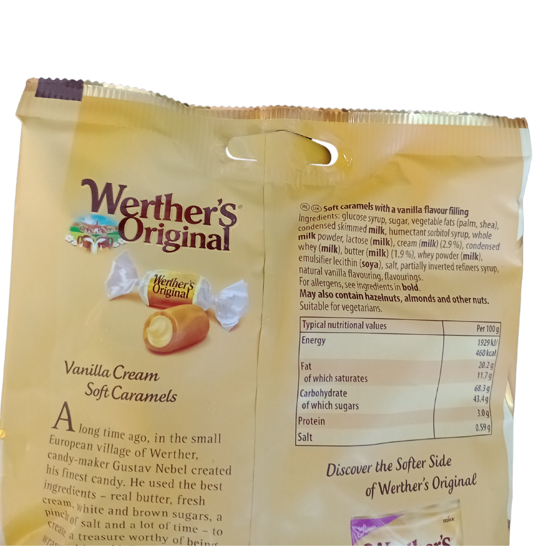 Savor the rich, indulgent taste of Werther’s Vanilla Cream Soft 125g. These velvety soft candies combine the classic buttery caramel flavor of Werther’s with the sweet, aromatic essence of vanilla cream. Each piece offers a smooth, melt-in-your-mouth experience that’s perfect for those who love a sophisticated treat with a creamy twist. Whether you're enjoying them on your own or sharing with friends, Werther’s Vanilla Cream Soft is the perfect indulgence for any occasion.