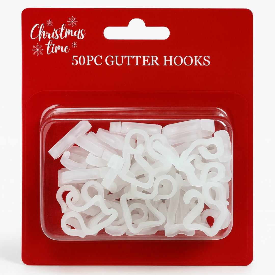 Easily hang your outdoor lights with Xmas Gutter Hooks 50pc, a practical solution for decorating the exterior of your home during the festive season. Designed to clip securely onto gutters, these durable hooks keep string lights neatly in place without damage or hassle. With 50 hooks included, you’ll have plenty to create a bright and beautifully arranged outdoor Christmas display.